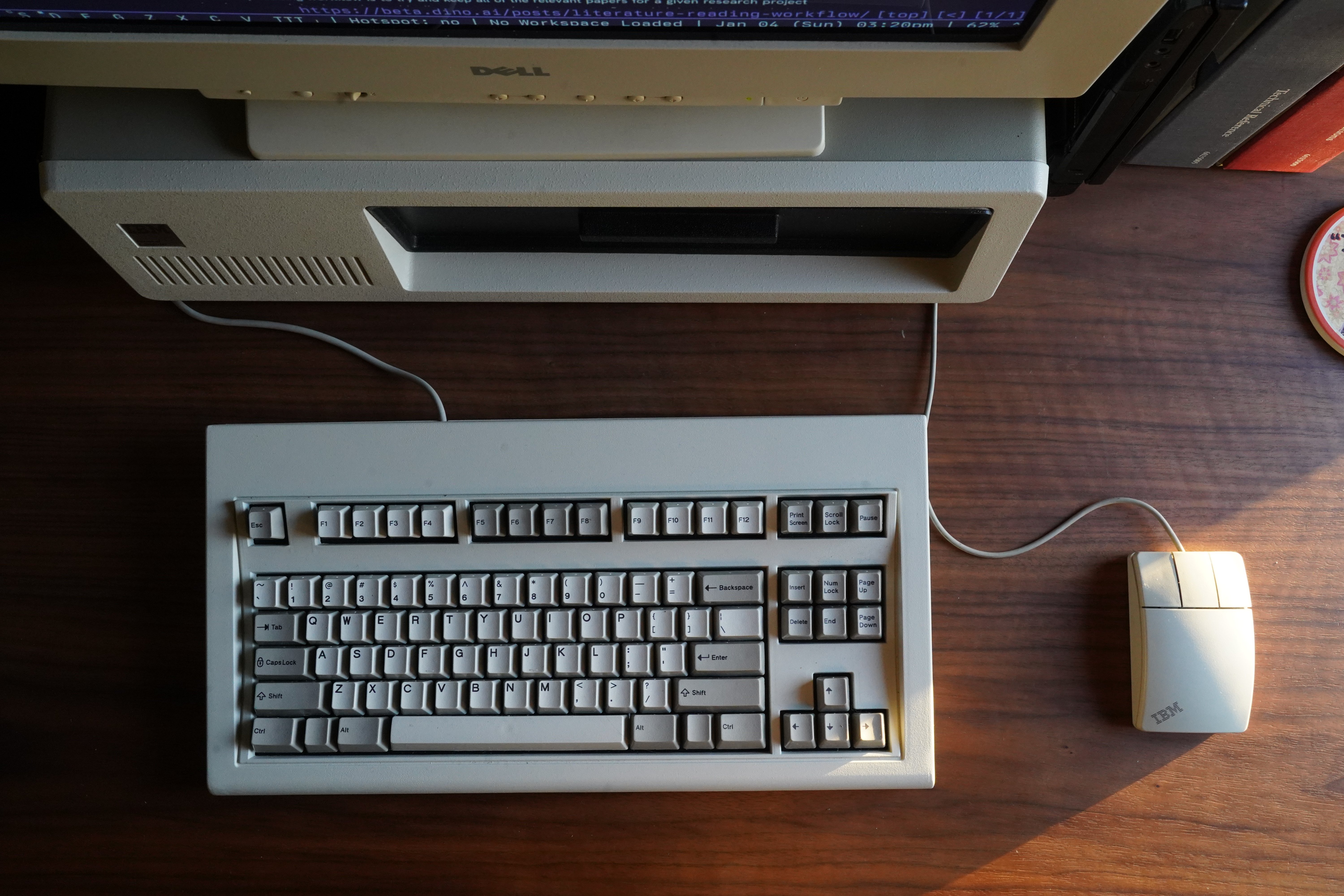 For awhile now I have been wanting to use a more appropriate mouse with the other hardware I use in my main computer setup. This mainly consists of a FSSK keyboard that is a modern product that uses IBM model f buckling spring keys in a Model M style housing. I also use a DELL P1110 as my main monitor. I have a plan to use a IBM PC 5150 as as USB-C docking station as well so my setup doesn’t really suite modern gaming or productivity mice from companies such as Razor and Logitech. The closest I have been able to find and was using is the 8bitdo mouse coloured to look match their other NES accessories. However as shown it is not a perfect match and the red buttons don’t really fit, instead of waiting and hoping that they release a IBM Model M colourway like they have with their mechanical keyboards I decided to get an older mouse that matches the keyboard.