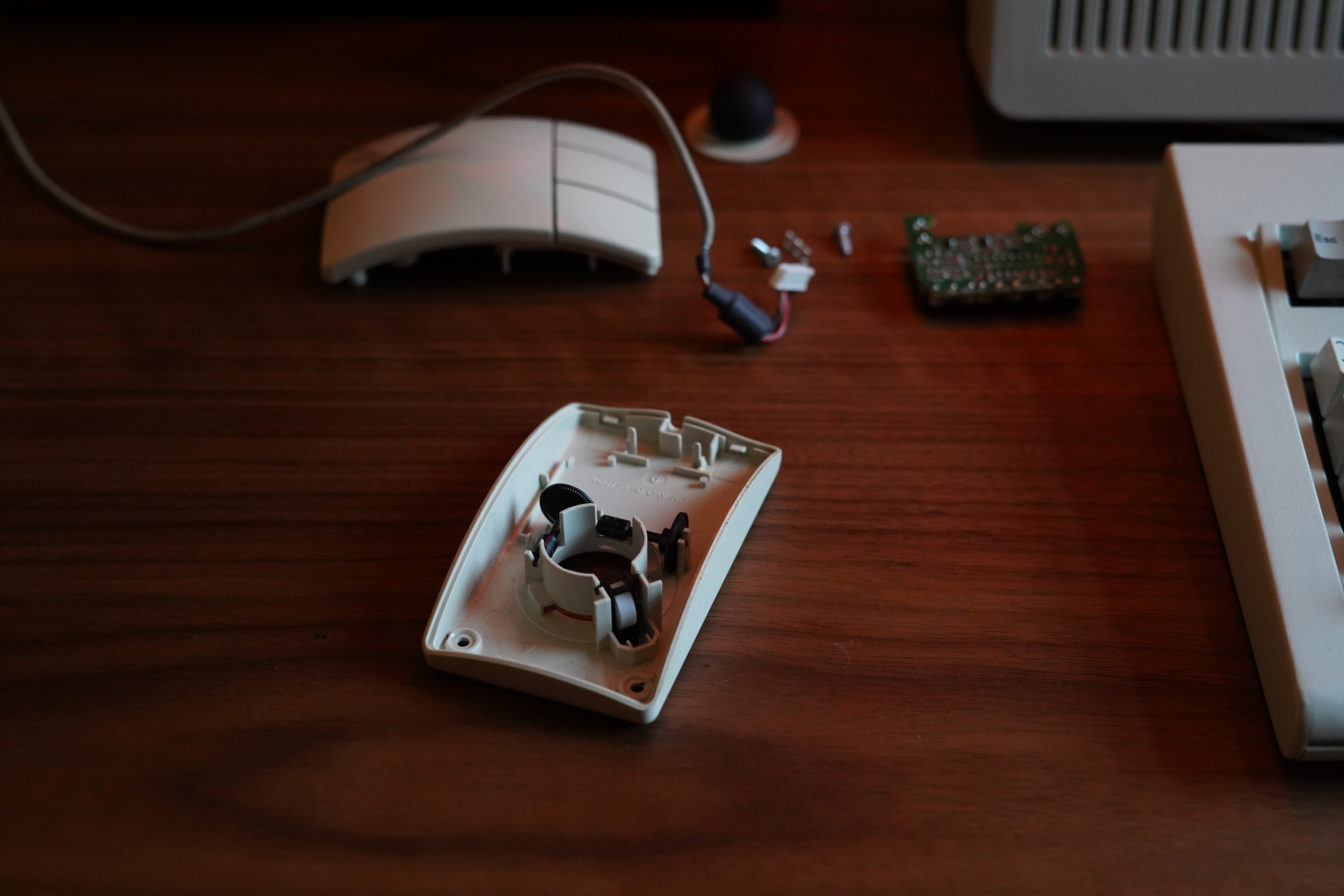 Given the poor performance of older PS/2 roller ball mice and only being able to get modern mice in styles that clash with the rest of my equipment I decided to retrofit newer mouse internals into the IBM mouse. In order to do this I needed to find a mouse where the sensor roughly lined up with the position of the ball mouse opening, as I didn’t want to make any external modifications to the IBM mouse. In order to do this I needed to be able to see the mice in person before buying, this limited my options for mouse brands as the only place I could think of that still exists to go and handle a large number of mice is the Razor store here in London.